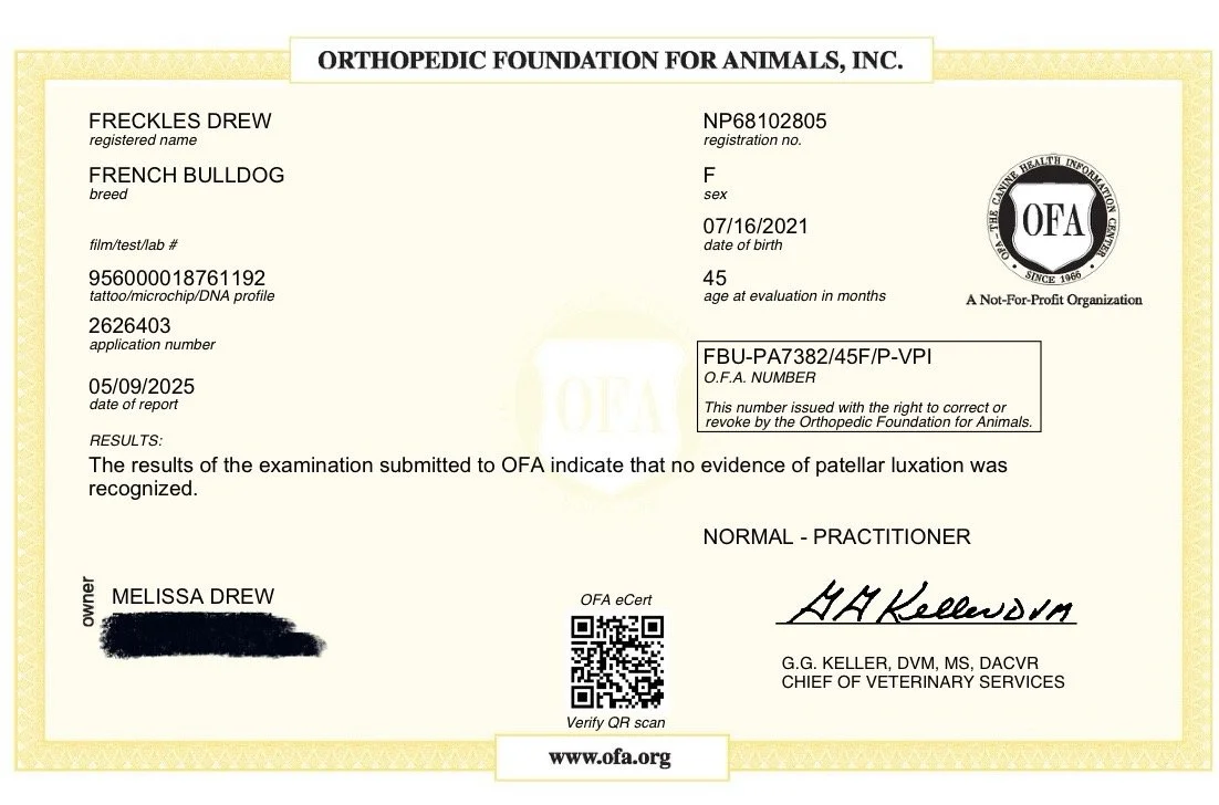 Freckles is everyone’s favorite frenchie. She’s not just a looker, she’s a fun, loving girl as well. She got her mama’s (Hazel) phenomenal temperment….they just want to “do the right thing” all the time!